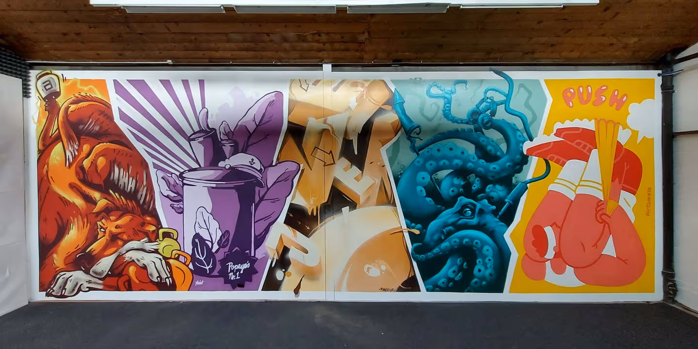 Seitdem haben wir über 100 Projekte in der Schweiz und Europa realisiert – von Genf bis Budapest. Wir organisieren Kunst-Jams unter dem Label Wallume, waren beim legendären Pop-up Waschküche in Bern dabei und haben mit den Universitären Psychiatrischen Diensten Bern den Event unartig ins Leben gerufen – Kunst, die über mentale Gesundheit spricht.