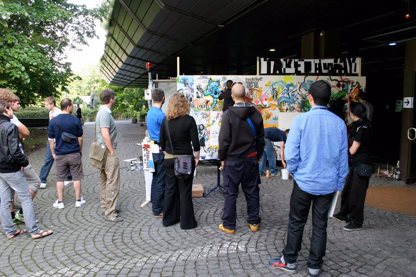 2006 gründen vier Freunde im PROGR in Bern artacks – als Kollektiv, als Bewegung und Plattform für urbane Kunst. Ihr erstes Projekt: ein bemalter Schiffscontainer mit bedruckten Beton- und rostigen Stahlplatten im Innern. Die Bühne? Draussen. Direkt. Echt.